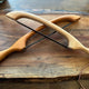 This unique Artisan Handmade Bread Bow Knife is handcrafted from high-quality, straight-grained hardwood. Hot bread, crusty French, tough bagels, and your favorite Sourdough can be easily cut. In addition, this knife can be used for vegetables, fruits, and cheeses. After using the knife, wipe the blade clean. The blade, made from high-carbon steel, has a double-beveled, scalloped design. We use a variety of domestic and imported woods. Each bow is hand sanded and buffed to a satin finish. No chemicals are added. Wood varieties include walnut, cherry, red oak , Brazilian walnut.
