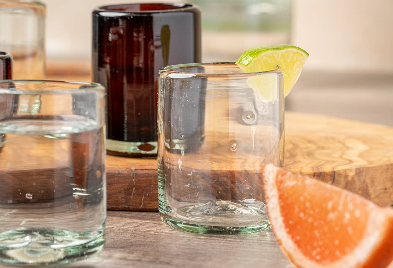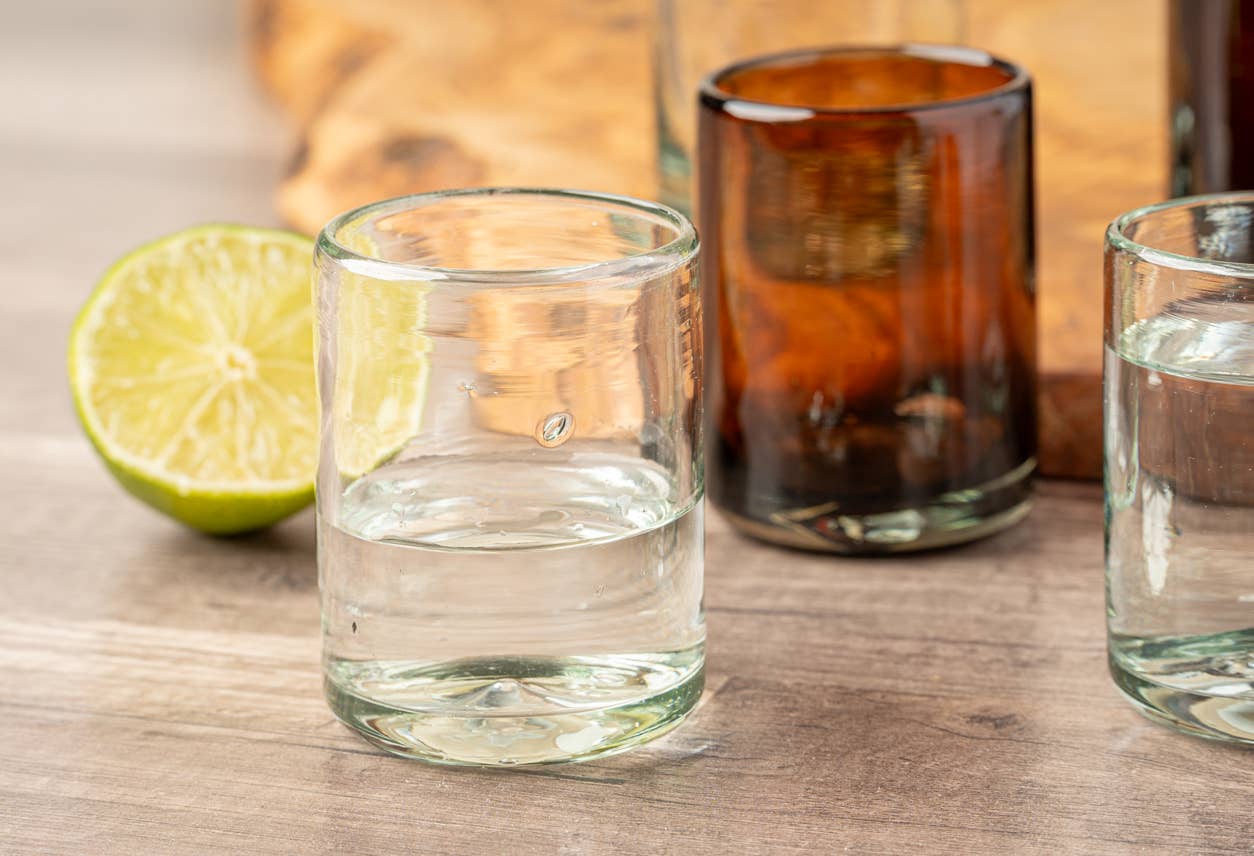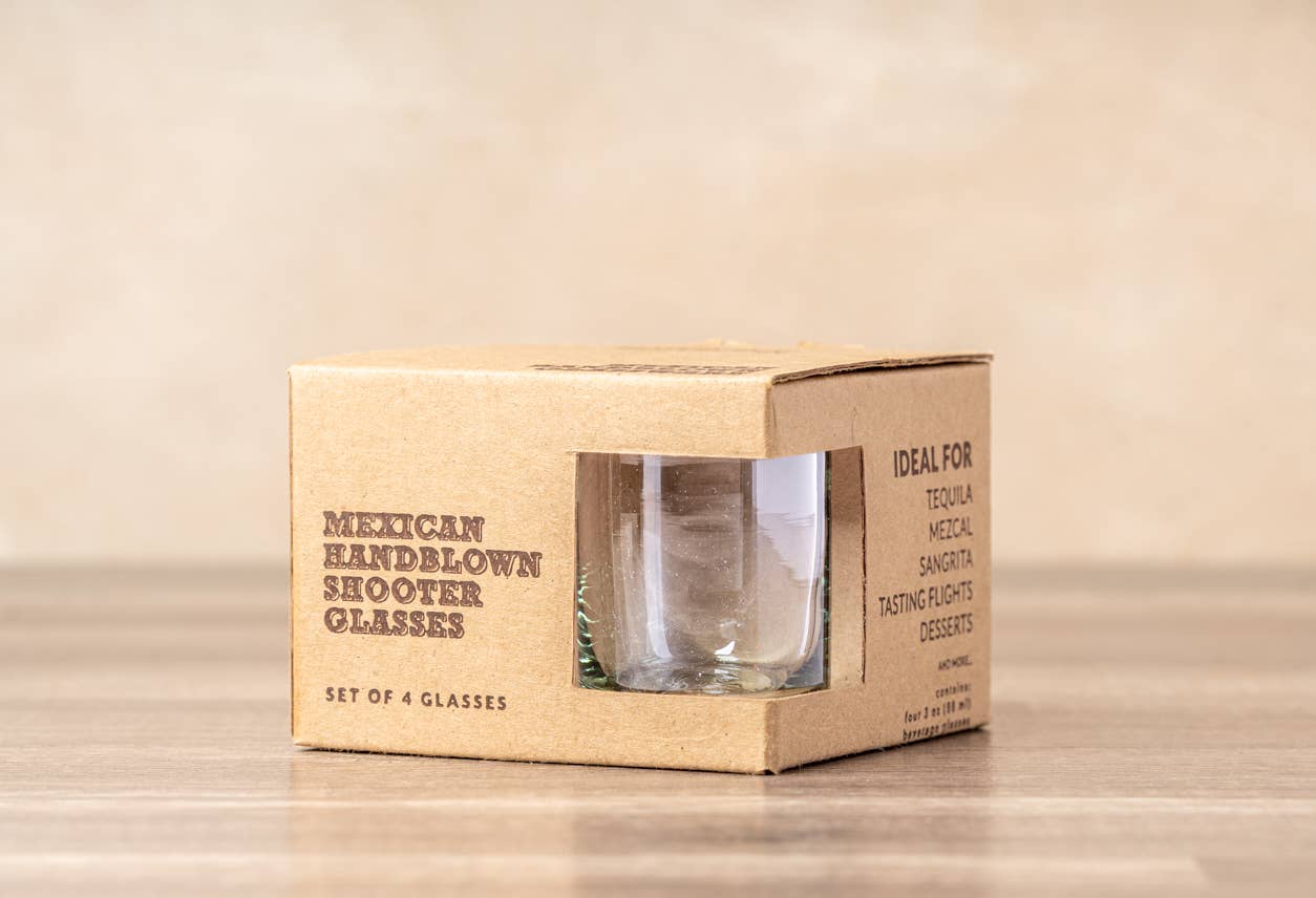 Introducing our Handblown Mexican Glasses in Clear - the perfect way to savor your favorite tequila or mezcal. Sustainably handcrafted by our talented glassblowing artisans in Jalisco, Mexico, each glass is meticulously shaped while molten hot, preserving its distinctive character. **Packaged in sets of 4 as