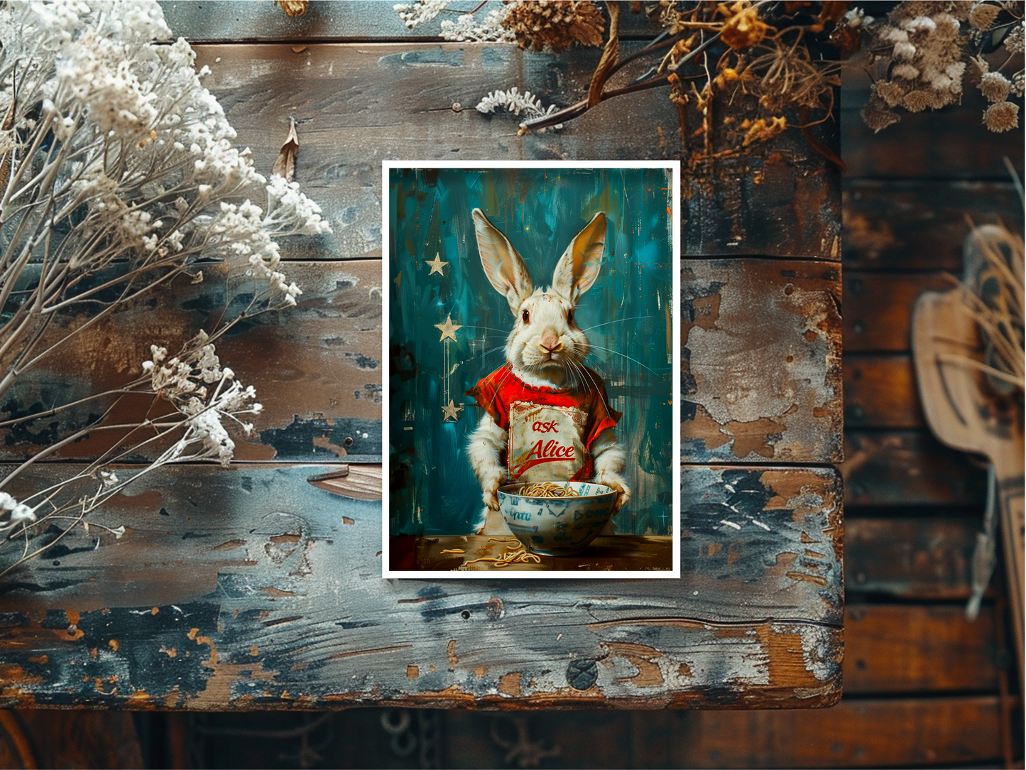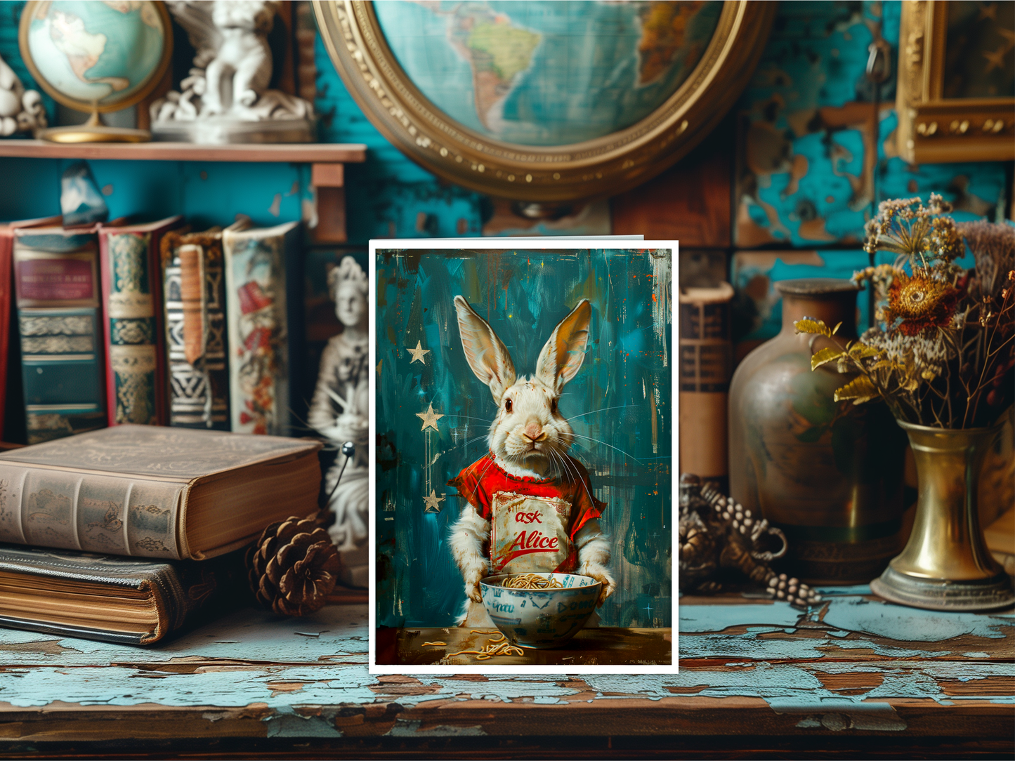 Salty Alyce - Ask Alice Rabbit Eating Ramen Noodles Blank Card 113AS