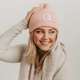 The Stay Smiling Rolled Cuff Beanie Features a thick yarn and double-rolled cuff for an oversized look, made to keep you warm. Cashmere Blend.