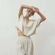The Crinkle Crop Top matches the Crinkle Loose Pants and Crinkle Cardigan in a 3-piece lounge suit that has an effortless, free, beautiful look. Wear individually or collectively. All 3 pieces are sold separately.